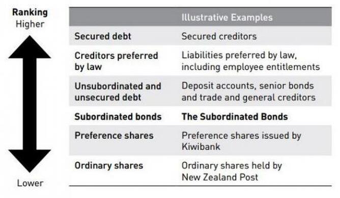 The table below shows how the Kiwibank subordinated bondholders would be placed in a liquidation.