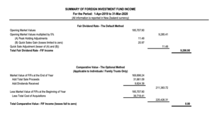 If you have less than $50,000 per person cost price of overseas investments (for Moneyworks clients this is generally Australian Dollar denominated investments, like Magellan, Platinum etc), then you have an exemption from the FIF/FDR tax regime and you pay tax on your Overseas income received. This is taken out of your portfolio during the year as the dividends or interest is paid.