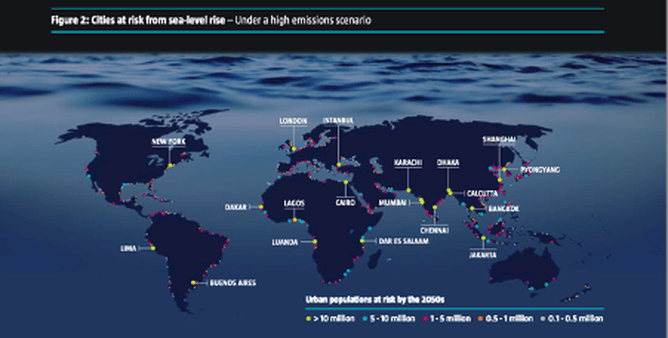 Sustainable Investing - Climate Change - cities at risk from seal level rise.