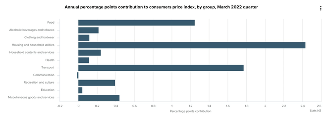 Bernard Hickey has calculated that just over a third of inflation last year was generated by the houses we live in or were being built. If housing costs are stripped out of the domestic inflation numbers, inflation was just 4.0% (this doesn’t account for imported inflation.) This category is made up of rent, rates and the cost of building a new house.