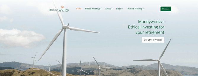 As our commitment to the New Zealand community, we decided to purchase genuine New Zealand photos to support our key pages. We have retained all the depth about financial planning within the site, and it is available with clicks to go deeper on particular topics, but the main change is the change to a focus on the ethics of Moneyworks as a business, and on ethical investing.