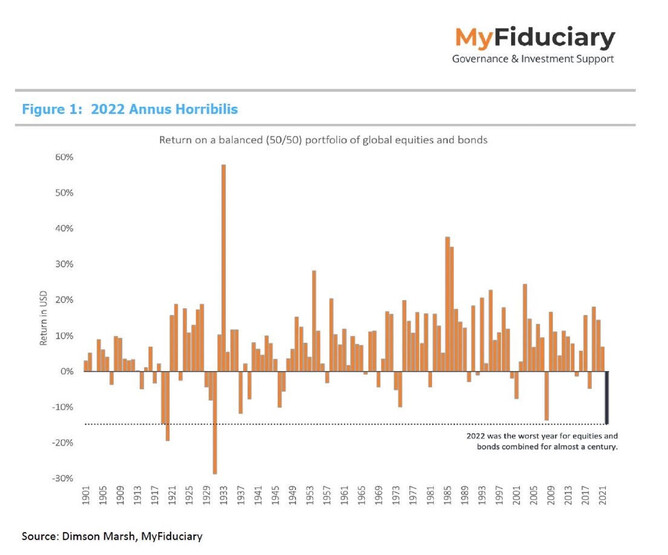 If you are feeling rattled by the investment returns and values, it is because between the two asset classes falling, 2022 was the worst year for equities and bonds combined for almost 100 years. The last time this happened (and things were worse) was around the 1929 crash and when you check out the graph, you will see that most times that returns were this unpleasant the markets rebound strongly within a few years.