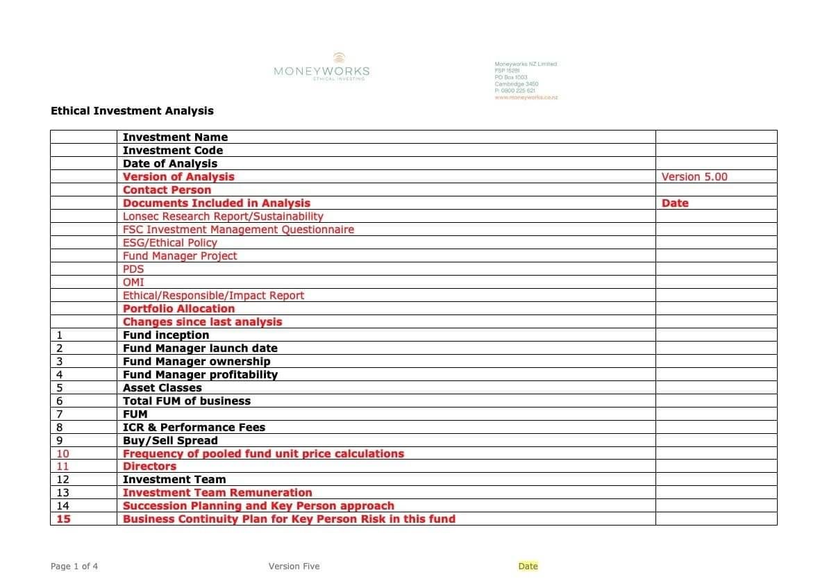 This template changes as more information becomes available, or the information is no longer adding value. The document is designed to be updated on a regular basis (usually after the fund manager project, or if there are material changes to the offering).
