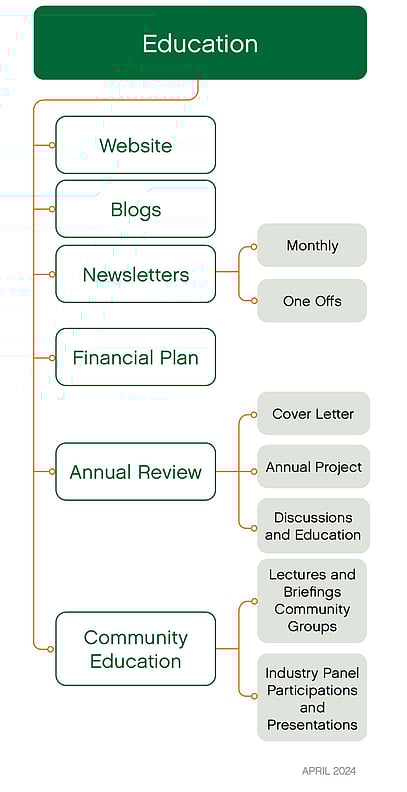 The Education Pillar has six branches of education that we provide to our clients (and the community). The most important one for our clients is our Annual Review - which we have outlined below in more detail for you .